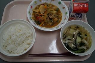 今日は中華の献立でした。スープにはしめじとえのき