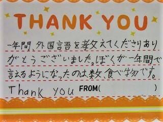 1年間、楽しい英語の授業をありがとうございました。来年も英語の時間が楽しみです!