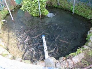ヤマメやコイを養殖されています。すごい大きさと数です。驚きました。