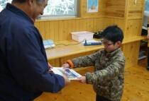 その他に,県文集「ともだち」に名前が掲載されたY・Nくん(2年)とK・Jさん(3年)とY・Hさん(4年)、そして挿絵が採用されたM・Sくん(1年)に賞状を授与しました。