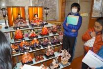 雛飾りの前で、子どもたちが、「あかりをつけましょ、ぼんぼりに・・・・・」と、歌「うれしいひなまつり」を歌いながらながめていました。