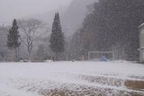 朝学校に来ると、昨晩から降り出した雪で一面の銀世界でした。
