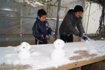 保育所の子どもたちも小学生も雪だるま作りや雪合戦と、とても元気です。