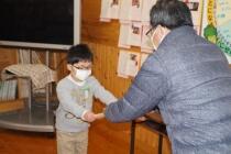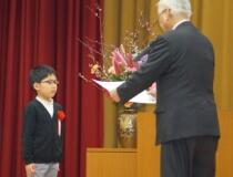 本校からは、人権標語の部で1年生のSくん、硬筆の部で2年生のNくんが優秀賞に入賞し、教育長さんから賞状を授与されました。