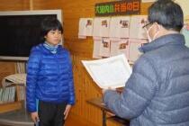Tくんは、お別れ会で学校やホームステイ先でお世話になったことや、椎葉村と門川町の違いについてしっかりと述べることができました。