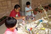 願いごとを書いた短冊や、折り紙で作った飾りを竹に結びつけました。