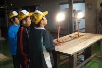 夜には、「ライトトラップ」をしました。演習林の2階テラスに設置した投光器に集まってくるさまざまな虫を観察しました。