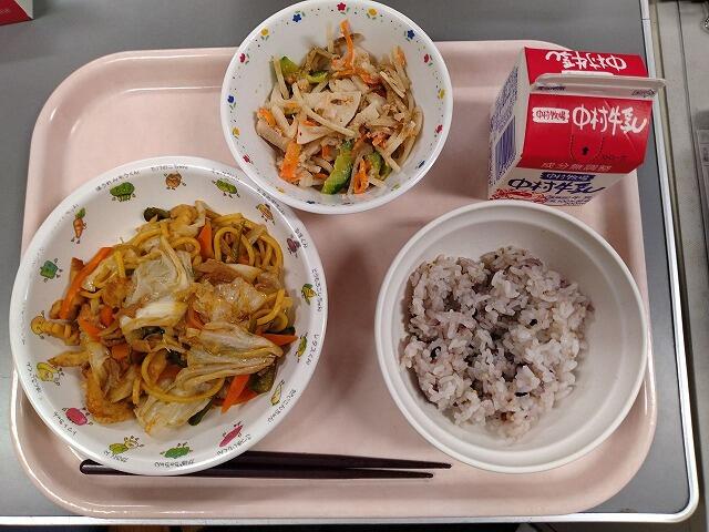 前にも書きましたが、赤みがあってなんだかめでたいごはんです。やきそばは野菜、肉、ちくわ、いかなどたくさん入っていておいしかったです。根菜サラダはレンコンとごぼうが主役のカミカミサラダです。毎日の給食に感謝です。