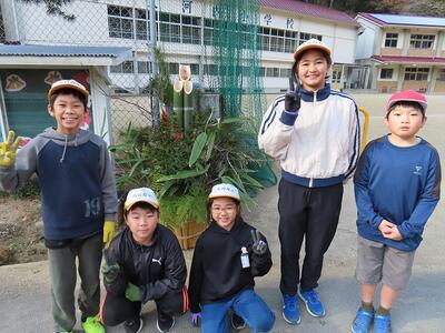 九大演習林での宿泊学習が終わった午後、お正月に向けて門松作りを行いました。