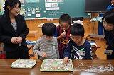 当日は、1・2年生が大豆の変身を中心に学習しました。大豆が変身してできる豆腐や