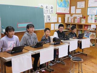 5・6年生が、インターネットを通じて、ほかの学校と交流学習をしていました。