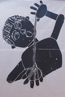以前の記事で、1・2年生の紙版画の下絵を紹介しました。その版画が仕上がっていました。
