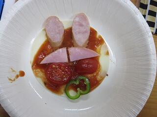 ウサギさんピザを作っていたつもりが、ピーマンの鼻をのせたらブタさんになったそうです。