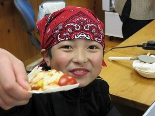 1・2年生がお楽しみ会でピザパーティーをしました。