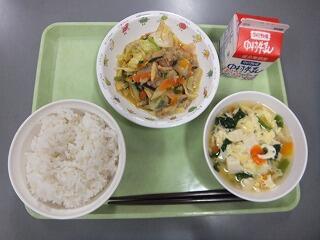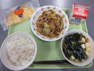 麦ごはん ホイコーロー わかめスープ みかんクレープ