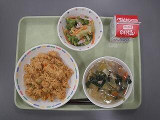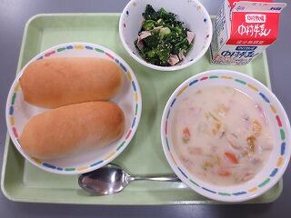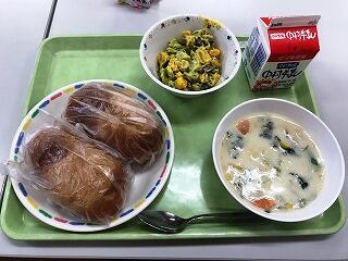スープにもサラダにもたくさん野菜が入っていて、栄養満点の給食でした。