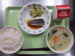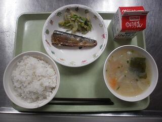 麦ごはん ・ 大根のみそ汁 ・ さんまの塩焼き ・ 白菜の昆布和え