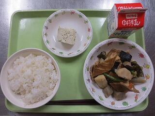 麦ごはん ・ 椎葉煮しめ ・ 菜豆腐