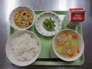 今日予定していたスキー遠足が延期になったので、急遽給食となりました。そのため、牛乳はありません。