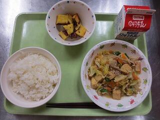 麦ごはん ・ 豚肉と厚揚げのみそ炒め ・ 大学芋