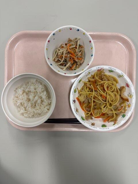 今日は大盛りの塩焼きそばが出ました。写真の倍位の量の焼きそばが出て、子供たちは満足そうでした。おいしかったです。