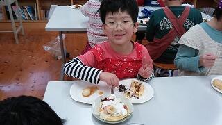 4日は、早起きして朝食づくりです。みんなで協力して、準備しました。