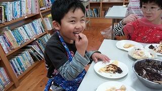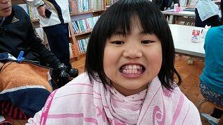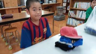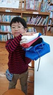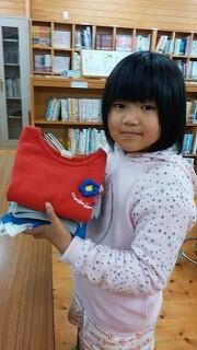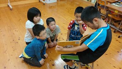 最後に読み聞かせ。2年生のTくんが「おにぎりにんじゃ」を読みました。