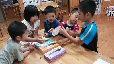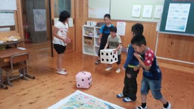 算数は、100までの特大すごろくをすることにし、国語は、「いつ」「どこで」「だれが」「なにをした」のバラバラのカードをくじ引きして、あべこべの文を作る、「いつどこでゲーム」をすることにしました。そして、最後には読み聞かせをするという計画です。