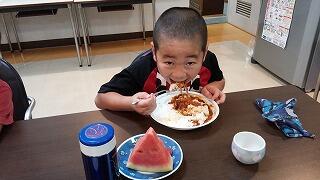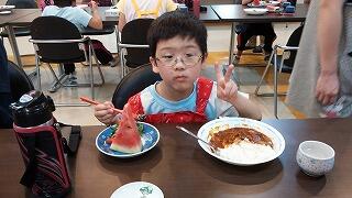 この後みんなで給食を食べました。Sくんの楽しみにしていたカレーです。