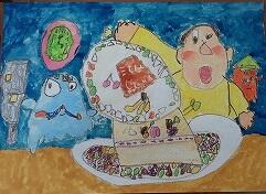 1,2年生は課題図書「オバケたんてい」を読んで感想画を描きました。