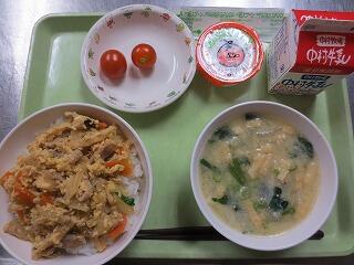 木の葉丼 ・ ご汁 ・ ミニトマト ・ フルーツムース