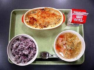子どもたちが楽しみにしていたグラタンの日!熱々でとってもおいしくて、みんな大切に味わって食べていました。コンソメスープも温かくて。。。こんなに温かい給食を食べられて幸せでした。