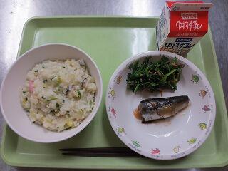 七草雑炊 ・ イワシのうめ煮 ・ ごまあえ