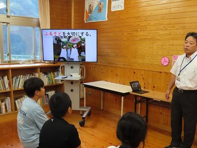 校長先生から学校の教育目標の一つである「ふるさとを大切にする」ことについてお話がありました。