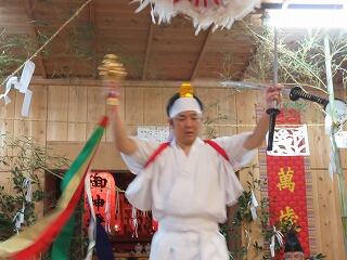 終盤の演目「神崇(かんしい)」。刀をもった勇壮な舞です。