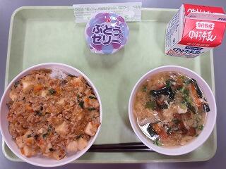 マーボー丼 ・ 中華きのこスープ ・ ぶどうゼリー