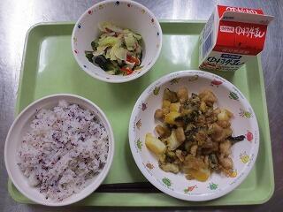 麦ごはん ・ じゃがいもと魚の揚げ煮 ・ 和風和え