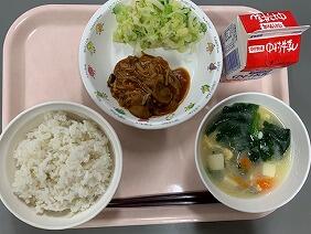 麦ごはん 豚肉の黒糖煮 キャベツの甘酢和え