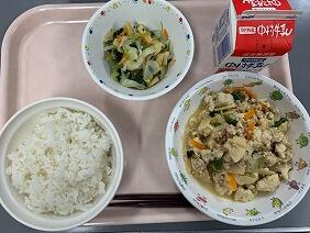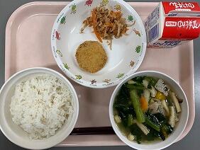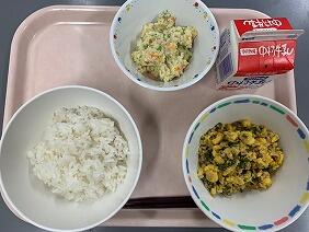 麦ごはん 小松菜のごま和え 炒り豆腐