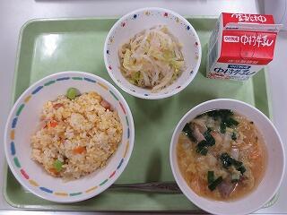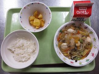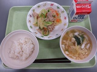 給食前から八宝菜のいい香りがただよい、みんなお腹ペコペコでした。野菜たっぷりの八宝菜は、うずらの卵も入っていておいしかったです。
