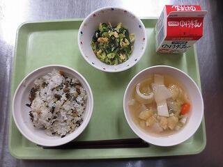 わかめごはん ・ とうきび汁 ・ ミルクおから