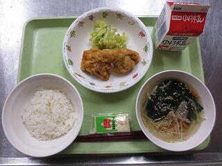 麦ごはん ・ わかめスープ ・ チキン南蛮 ・ 添えキャベツ