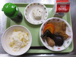 とうきびご飯 ・ 椎葉にしめ ・ 菜豆腐