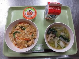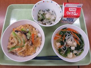 親子丼 ・ 魚そうめん汁 ・ 甘酢あえ