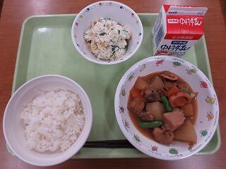 麦ご飯 ・ じゃがいものうま煮 ・ 千切大根のピーナッツあえ