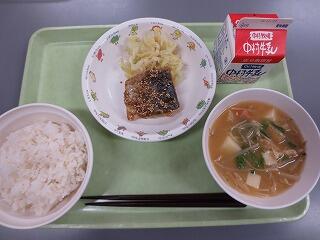 麦ご飯 ・ けんちん汁 ・ 魚のみそマヨネーズ焼き ・ 添え野菜