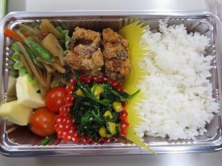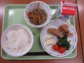 麦ご飯 ・ 鶏肉の唐揚げ ・ 五目きんぴら