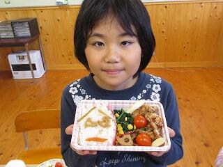 ミニトマトを使って日の丸弁当のようにしたり、おかずで顔を作ってみたり、いろいろな工夫をしながら上手に詰めていました。