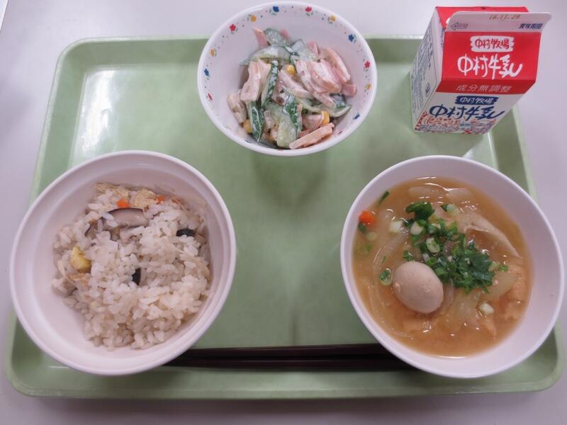 きのこご飯 ・ ご汁 ・ れんこんのマヨネーズあえ