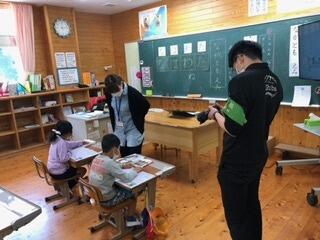 先生たちも、複式での授業に力いっぱい取り組む姿を見せていました。